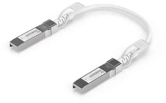 Direct attach cable with auto link optimization for seamless 1G SFP, 10G SFP+, and 25G SFP28 interconnects between UniFi devices.