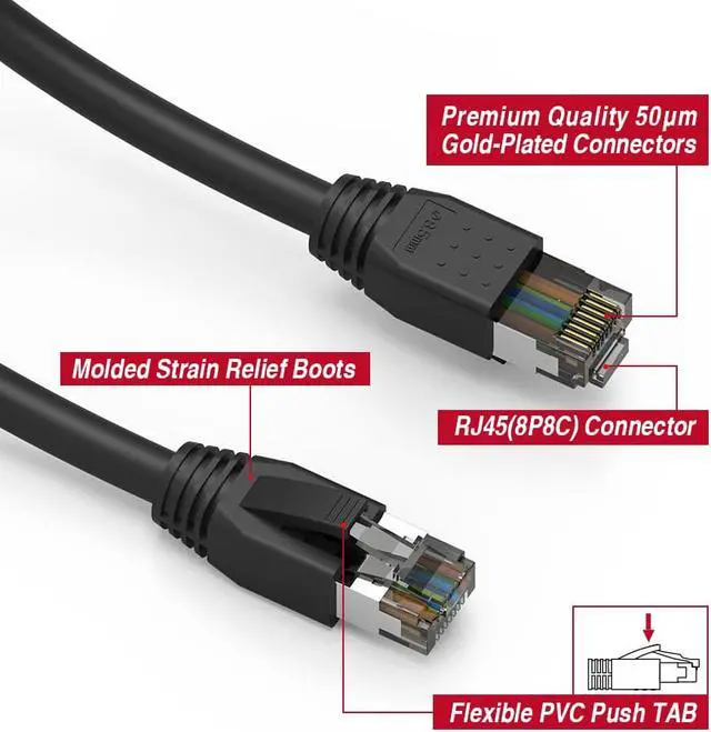Fuji Labs 50Ft Cat8 S/FTP Ethernet Network Cable 2GHz 40G (Cat 8, Black)
