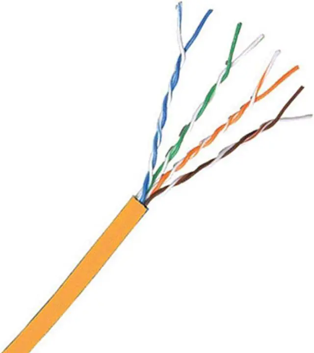 Find the Comprehensive 1000' Cat 6 550MHz UTP Solid Orange Bulk Cable, a high-performance solution for your networking needs. This cable is designed with four unshielded twisted pairs and solid bare copper 24 AWG construction, ensuring robust and reliable data transmission. With a nominal outer diameter of 0.25 inches, it offers a compact yet sturdy design.