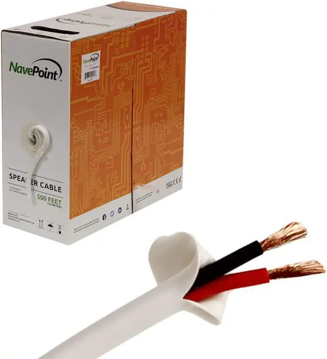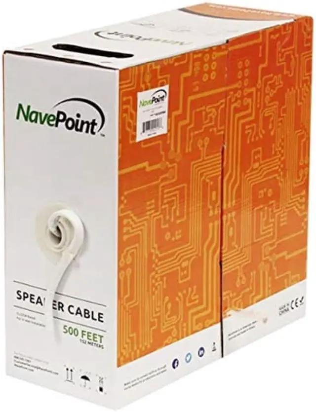 NavePoint's 16 Gauge Speaker Cable is the perfect solution for wiring your home, car, or office stereo system. Connect your speakers to amplifiers or receivers. Made from professional grade materials, this cable features 64 strands of 0.16 mm copper clad Aluminum. This cable is available in bulk 500 ft length with white PVC jacket and the convenient pull box packaging with clip makes it easy to store for future use.