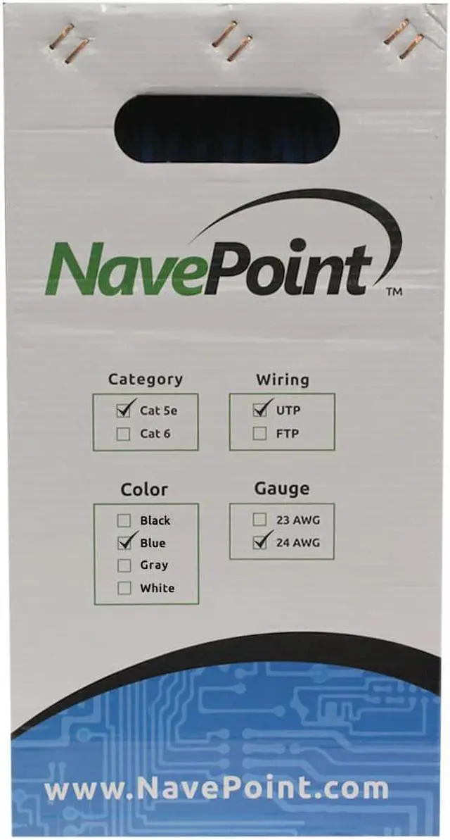 NavePoint CAT5e UTP Ethernet Network Bulk Cable - 1000 Ft Blue