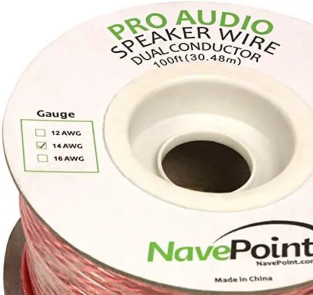 NavePoint's 14 Gauge Speaker Cable is the perfect solution for wiring your home, car, or office stereo system. Connect your speakers to amplifiers or receivers. Made from professional grade materials, this cable features 80 strands of 0.16 mm copper clad Aluminum. This cable is available in bulk 100 ft length with a clear PVC jacket and comes on a spool for easy storage and convenient use.