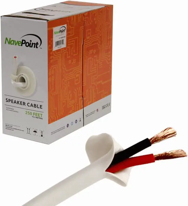 NavePoint's 12 Gauge Speaker Cable is the perfect solution for wiring your home, car, or office stereo system. Connect your speakers to amplifiers or recievers. Made from professional grade materials, this cable features 102 strands of 0.16 mm copper clad Aluminum. This cable is available in bulk 250 ft length with white PVC jacket and the convenient pull box packaging with clip makes it easy to store for future use.