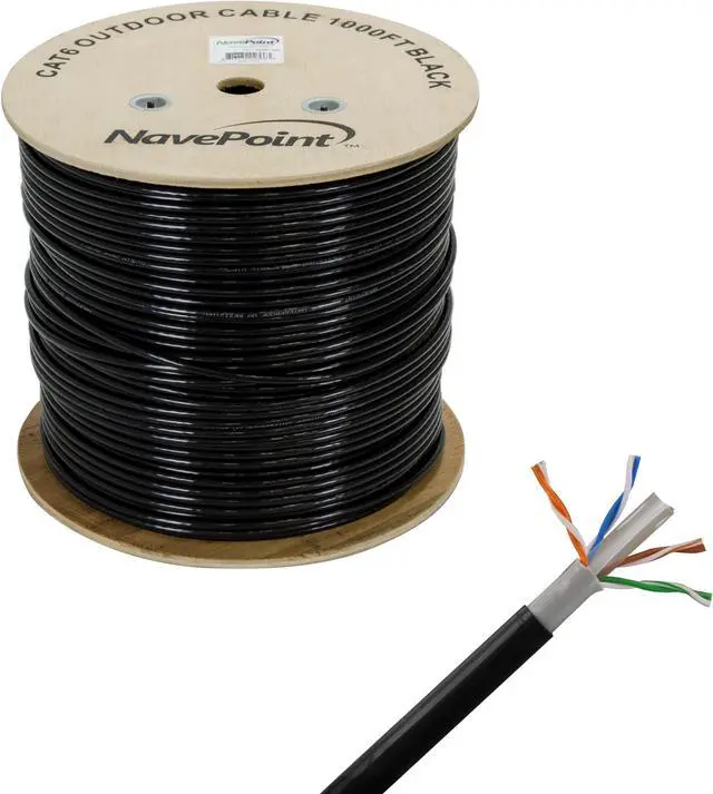 NavePoint's Cat6 Outdoor UTP (unshielded twisted pair) Direct Burial Ethernet Cable with true 23AWG/ 0.57 mm solid conductor is ideal for your indoor/outdoor voice, data, video and security networking applications. This waterproof, Indoor/Outdoor LDPE cable features 8 conductors (4-Pairs) of solid bare copper with an HDPE (High Density Polyethylene) insulation and an LDPE rated PVC Jacket. This cable has been tested up to 550 MHz and is suitable for 10Base-T, Fast Ethernet (100Base-TX), Gigabit Ethernet (1000 Base-T or 1000 Base-TX) and 10-Gigabit Ethernet (10GBASE-T)