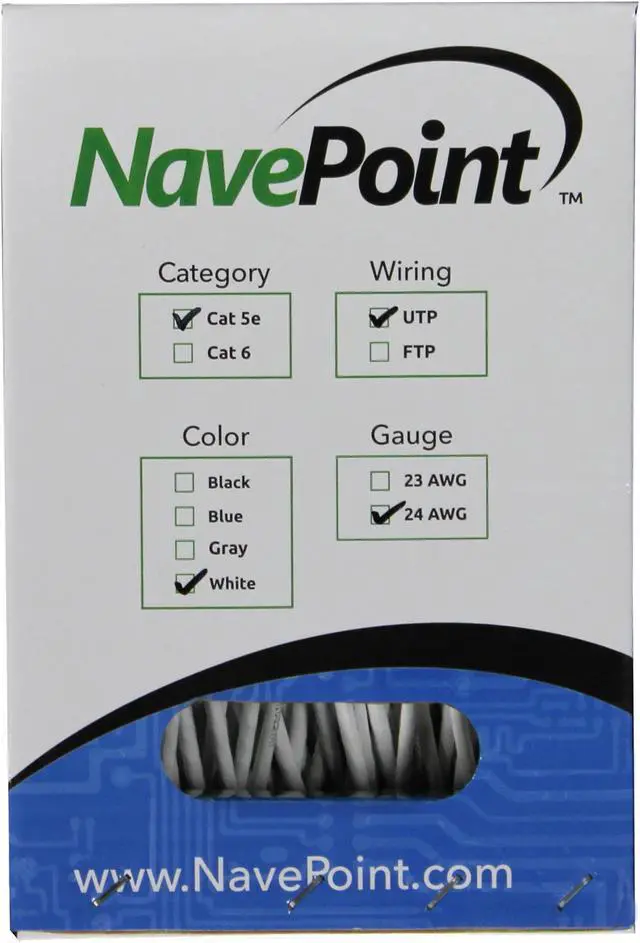 NavePoint's Category 5 UTP Bulk Ethernet Cable is the perfect solution for wiring your home or office. This cable is designed to provide superior performance for your applications including computers, routers, VoIP phones, printers, gaming consoles, routers, ethernet extenders, and switch boxes. Made from professional grade materials, this cable is available in a variety of lengths and colors.