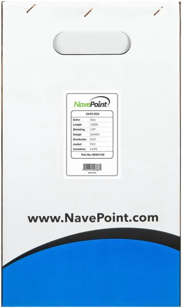 NavePoint's Category 6 CCA UTP Bulk Ethernet Cable is the perfect solution for wiring your home or office. This cable is designed to provide superior performance for your high bandwidth applications including computers, routers, VoIP phones, IP cameras, printers, gaming consoles, routers, ethernet extenders, and switch boxes. Made from professional grade materials, this cable is available in a variety of lengths and colors.