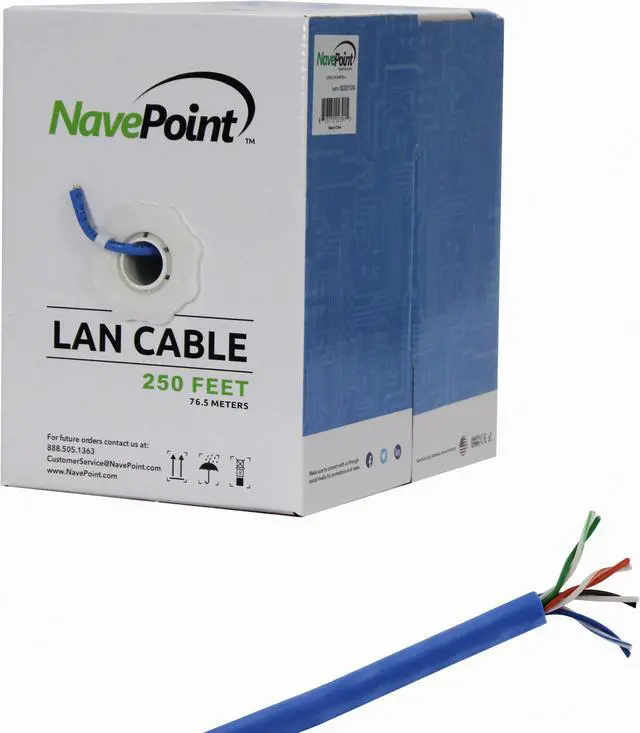 NavePoint CAT5e UTP Bulk (CCA) Ethernet Network Cable Solid 24AWG RJ45 LAN Wire 250FT Blue
