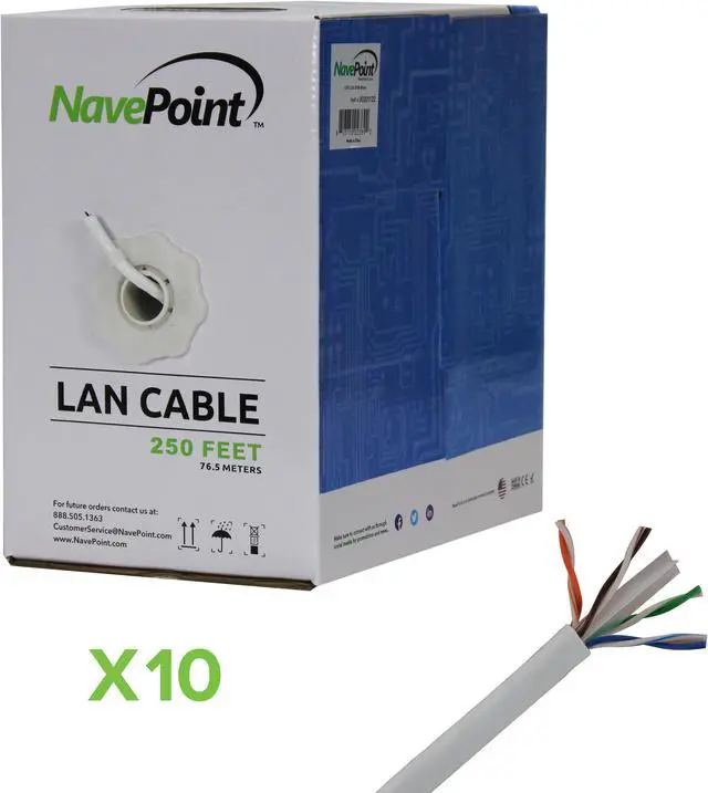 NavePoint CAT6 UTP (CCA) Ethernet Network Bulk Cable - 250 Ft 10-pack White