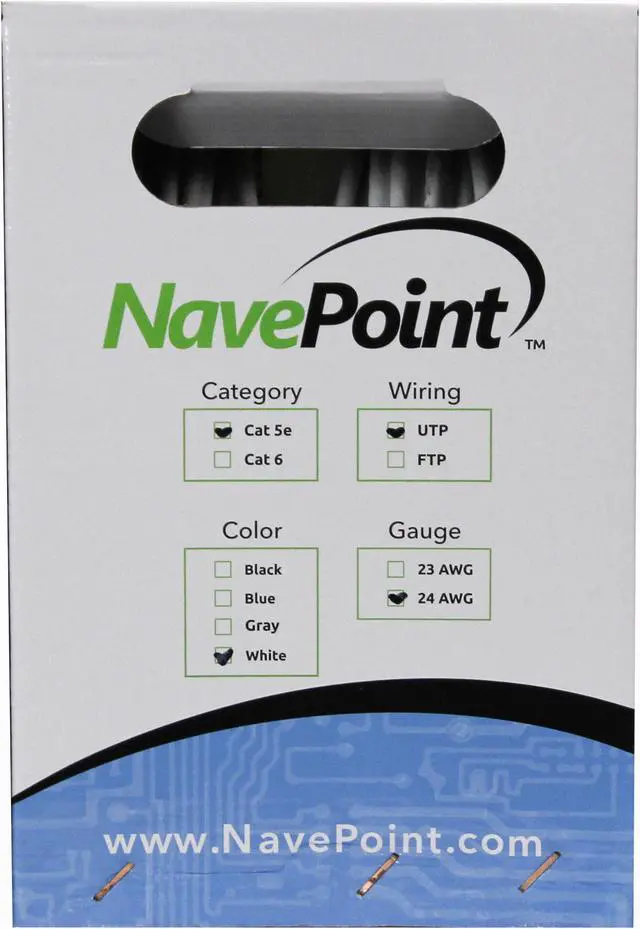 NavePoint's Category 5 UTP Bulk Ethernet Cable is the perfect solution for wiring your home or office. This cable is designed to provide superior performance for your applications including computers, routers, VoIP phones, printers, gaming consoles, routers, ethernet extenders, and switch boxes. Made from professional grade materials, this cable is available in a variety of lengths and colors.