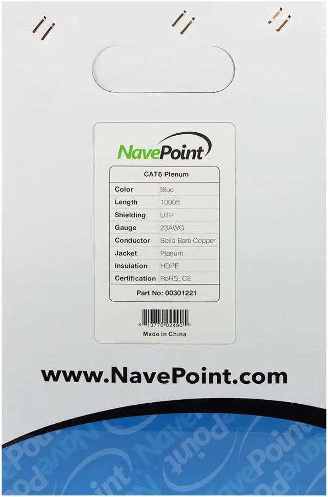 NavePoint's Category 6 CMP rated UTP Bulk Ethernet Cable is the perfect solution for wiring your home or office and can be used in wall, between floors and in plenum spaces. Gigabit ready, this cable is designed to provide superior performance for your high bandwidth applications including computers, routers, VoIP phones, IP cameras, printers, gaming consoles, routers, ethernet extenders, switch boxes, and PoE devices. Made from professional grade materials, this cable was made to meet or exceed ANSI TIA/EIA 568.2 standards. This cable features 23AWG and a diameter of 6.10 mm and is available in a variety of lengths and colors.