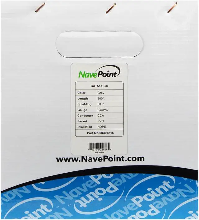 NavePoint CAT5e UTP Bulk Ethernet Network (CCA) Cable Solid 24AWG RJ45 LAN Wire 500FT Gray