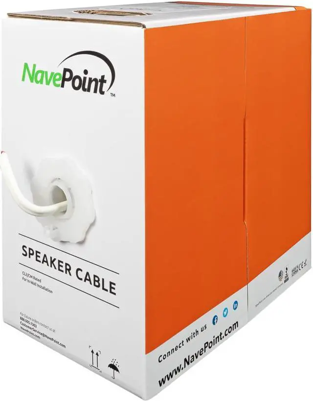 NavePoint's 18 Gauge Speaker Cable is the perfect solution for wiring your home, car, or office stereo system. Connect your speakers to amplifiers or receivers. Made from professional grade materials, this cable features 43 strands of 0.18mm copper clad Aluminum. This cable is available in bulk 500 ft length with white PVC jacket and the convenient pull box packaging with clip makes it easy to store for future use.