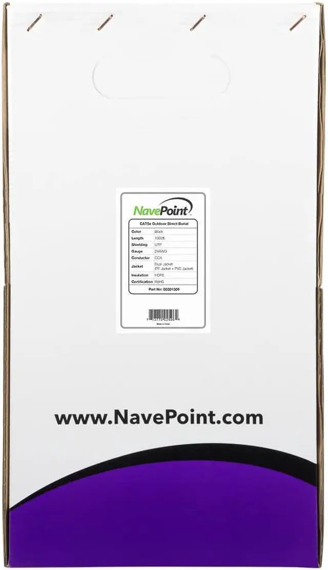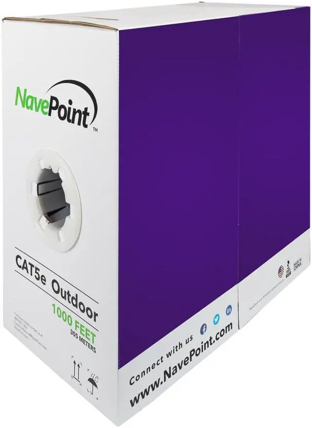 NavePoint brings you high quality, bulk rolls of Solid Outdoor Ethernet cable at unparalleled value. This high-performance bulk cabling is perfect for your custom network installation projects. Cat5e Outdoor cable has many uses. Bury directly in the ground if you wish or expose fully to the sun and elements. Double jackets can withstand the toughest environments.
