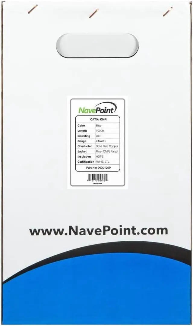 NavePoint CAT5e Cable CMR Riser UTP 24AWG 350MHz Network Ethernet 1000FT Blue Bulk