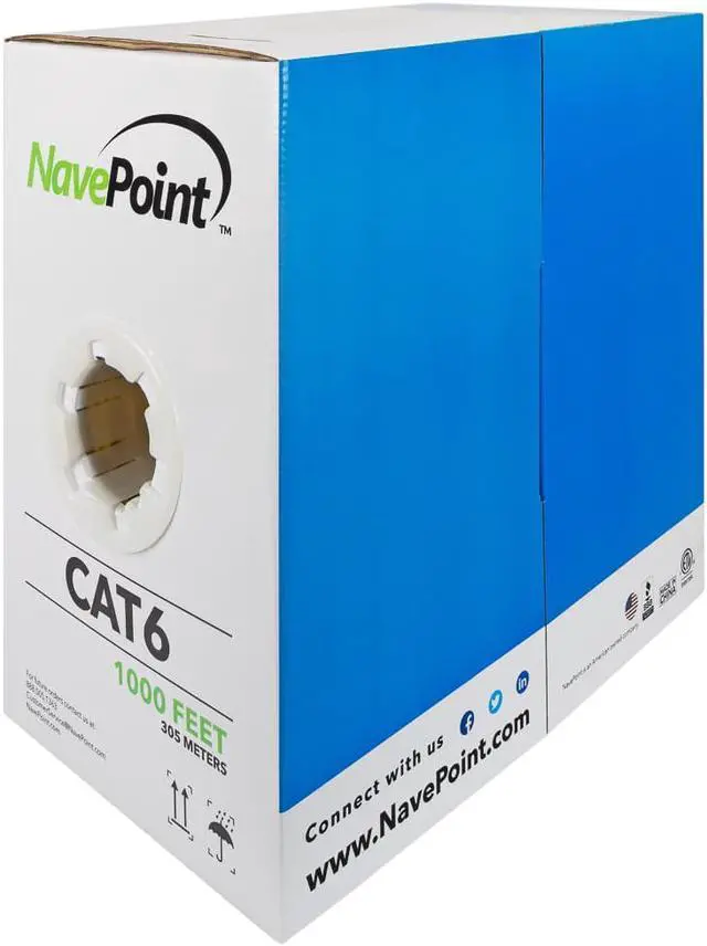 NavePoint brings you high quality, bulk rolls of Ethernet cable at unparalleled value. This high-performance bulk cabling is perfect for your custom network installation projects. Solid core conductors provide better performance over longer cable runs. This cable is CMR rated, safe for using inside the walls and between the floors of commercial class buildings. NavePoint Premium Cat6 cables are made of 100% bare copper wire, fully compliant with UL Code 444 and National Electrical Code TIA-568-C. 2 fire and safety standards. It is ETL listed.