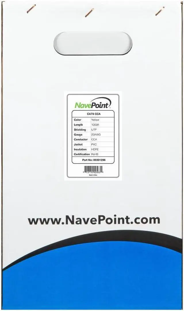 NavePoint's Category 6 CCA UTP Bulk Ethernet Cable is the perfect solution for wiring your home or office. This cable is designed to provide superior performance for your high bandwidth applications including computers, routers, VoIP phones, IP cameras, printers, gaming consoles, routers, ethernet extenders, and switch boxes. Made from professional grade materials, this cable is available in a variety of lengths and colors.