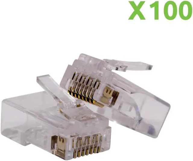 Made from high quality materials, but still offering great value, these Cat 5e RJ45 Connectors are ideal for terminating 24 or 26 AWG solid wire. these RJ45 connectors feature 50 micron gold plated contacts to ensure the best possible connection and reduce any data "crosstalk. " These connectors come in a package of 100 pieces. Check out our other Cat 5e connectors for different projects or quantities.
