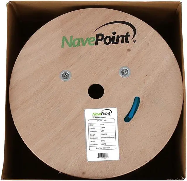 The NavePoint CAT6A UTP bulk Ethernet cable is Gigabit ready to provide superior performance for your indoor high bandwidth applications. The CAT6A Ethernet cable features fire retardant CMR riser-rated jackets that are designed to meet rigorous fire safety test standards, making this cable the choice for your installs.