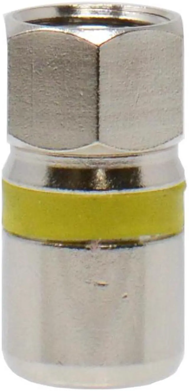 RG6 Quad Shield Coaxial F-Type connector with self-lock mechanism. Allows for easy & seamless installations of RG6 dual shield coaxial cables.