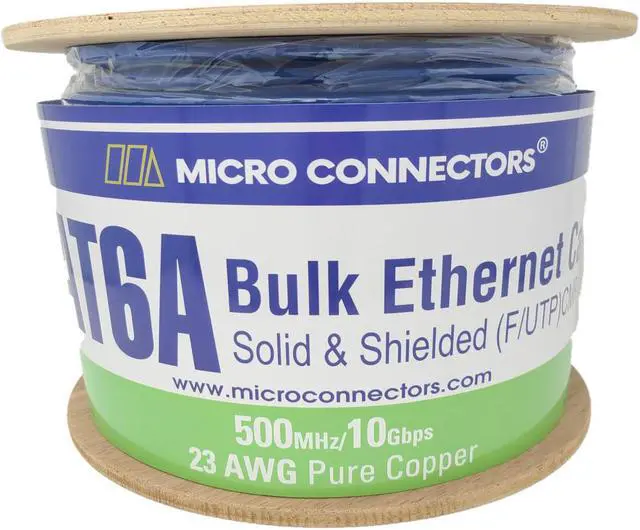 Micro Connectors 500 FT CAT 6A Solid & Shielded (F/UTP) CMR Riser Bulk Ethernet Cable (Blue) with 20 pcs of Shielded Modular Connectors (TR4-570SRBL-KIT)
