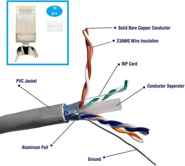 Comes with 10 pcs Shielded Modular Connectors rated for stranded & solid CAT 7/6A/6 cable.