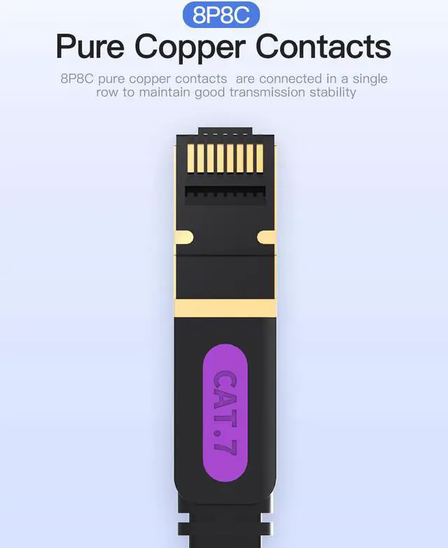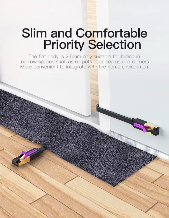 FLEXIBLE&DURABLE- This flat long patch cables are the most comfortable with any gasket type (in a flat, house, office),easy to suitable for the tightest spaces.