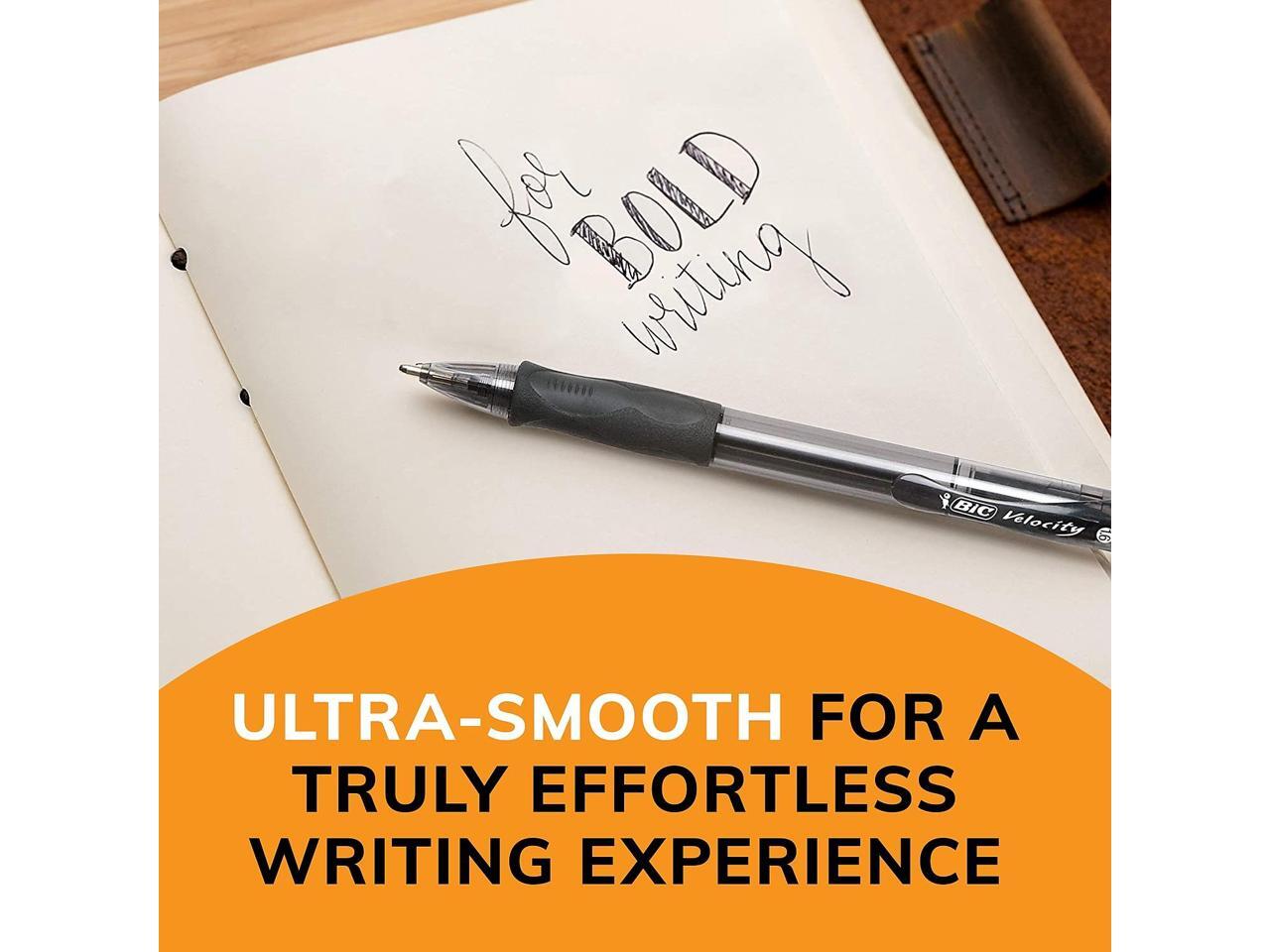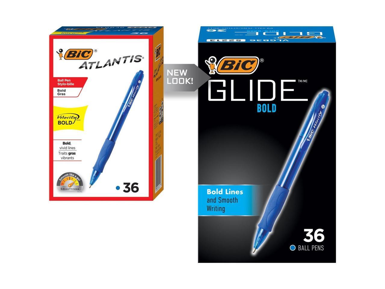 - Ball pens feature proprietary Easy Glide System ink technology for an ultra-smooth writing experience. Features a pocket clip for convenient carrying. This product is formerly known as BIC Atlantis Velocity Bold.