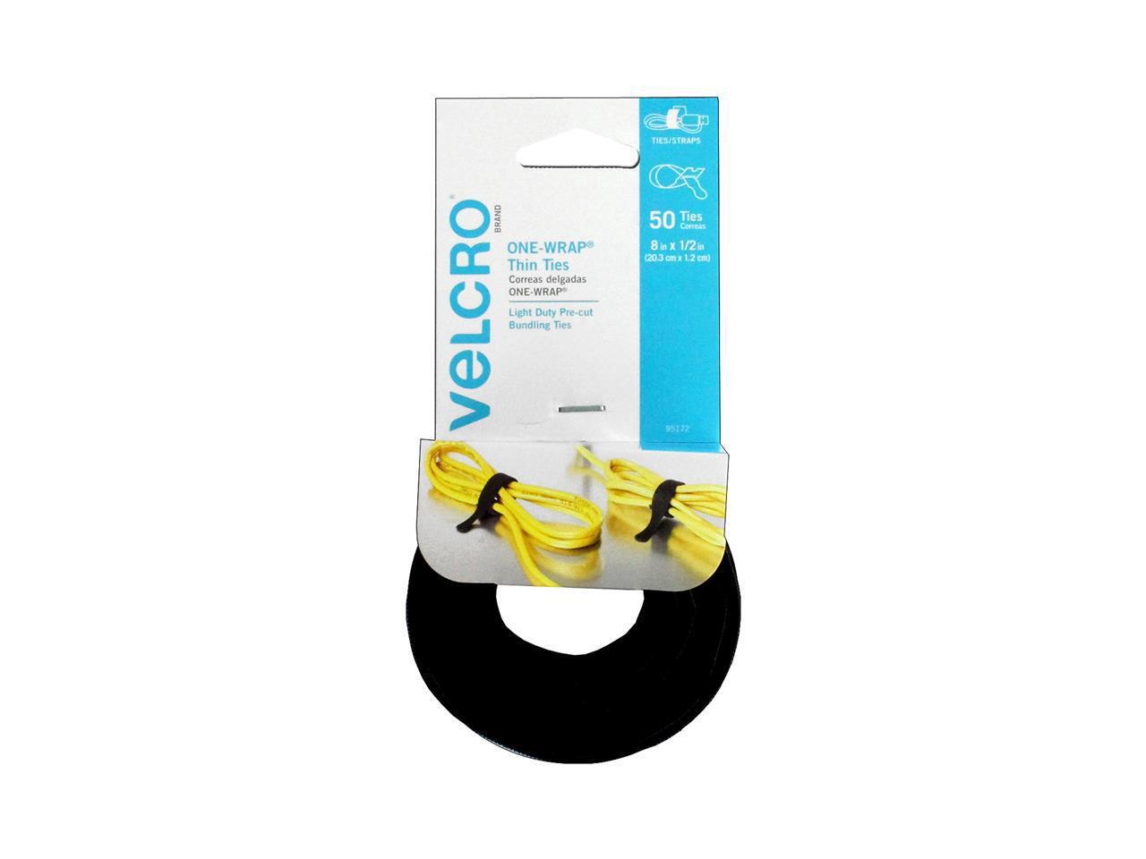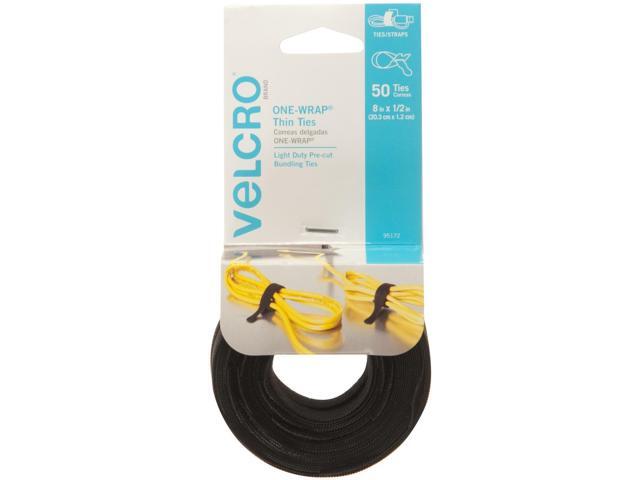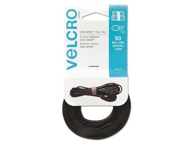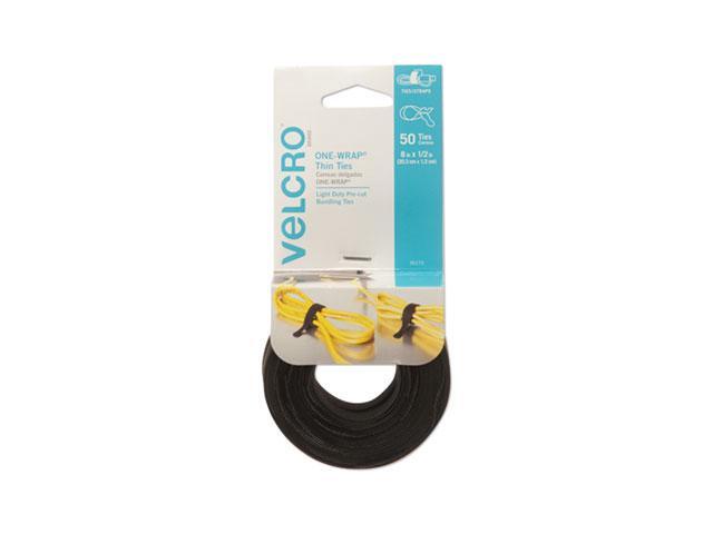 Velcro Brand One-Wrap Pre-Cut Thin Ties, 0.5" X 8", Black, 50/Pack 95172