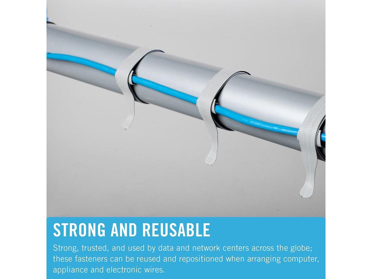 Adjustable and reusable pre-cut ties. Wraps onto itself for a secure hold.