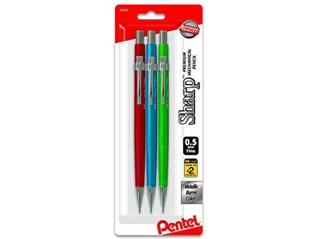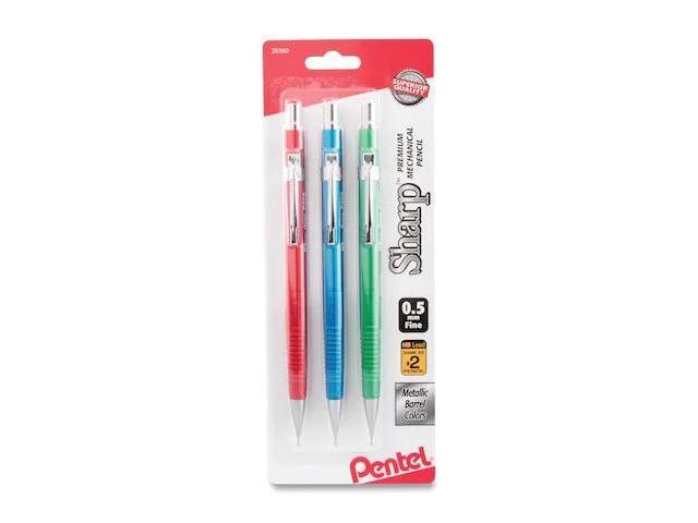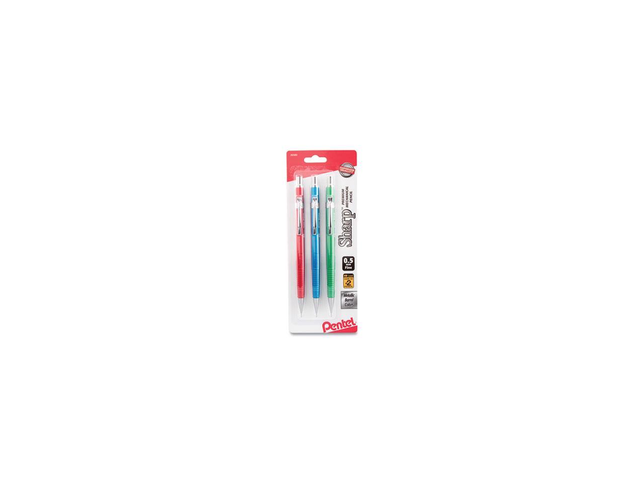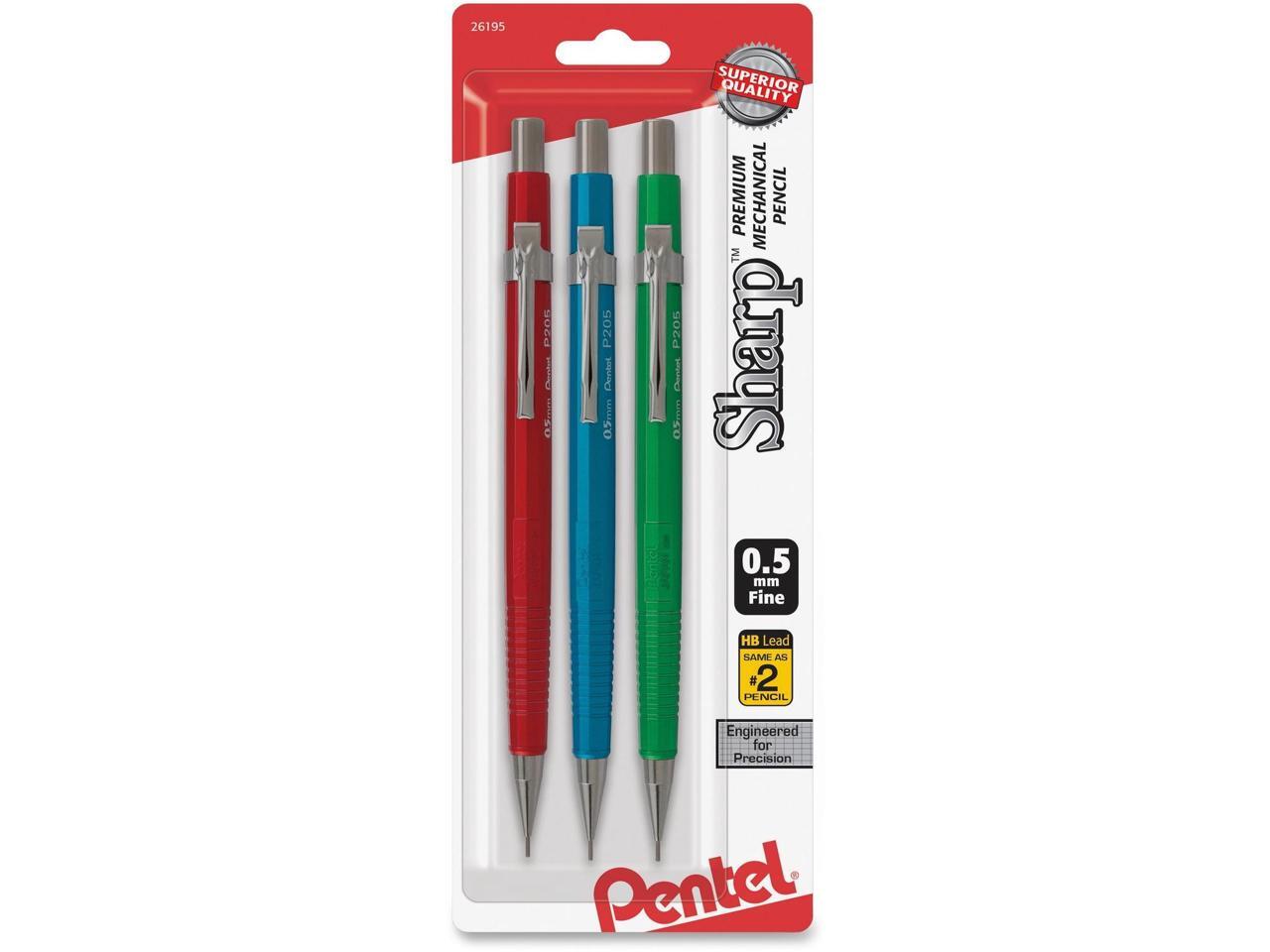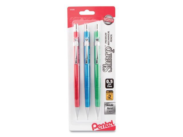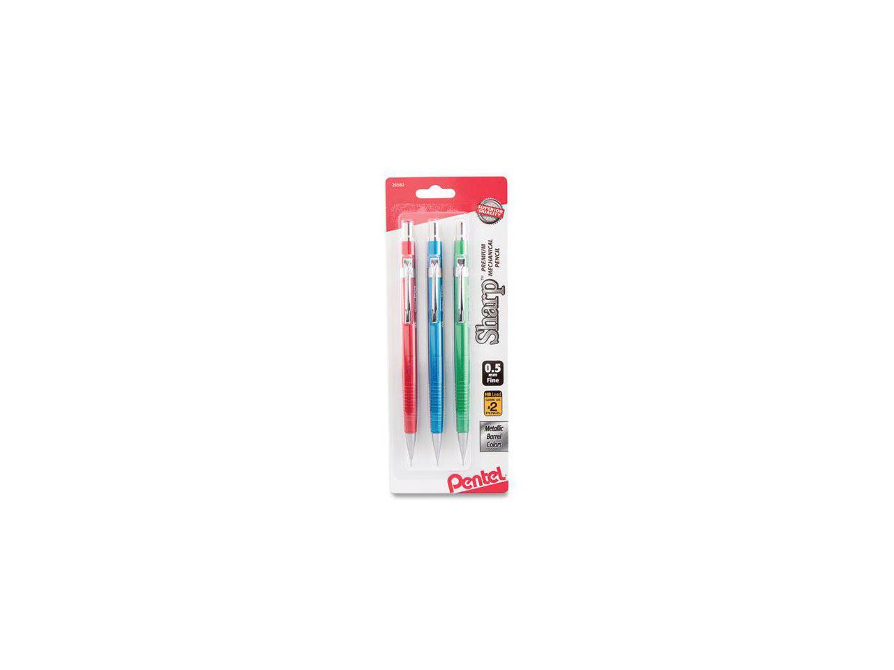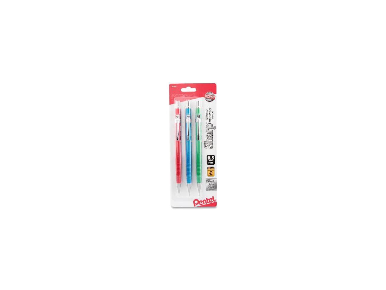 Pentel Sharp Mechanical Drafting Pencil 0.5 mm Assorted Metallic Barrels 3/Pack P205MBP3M1