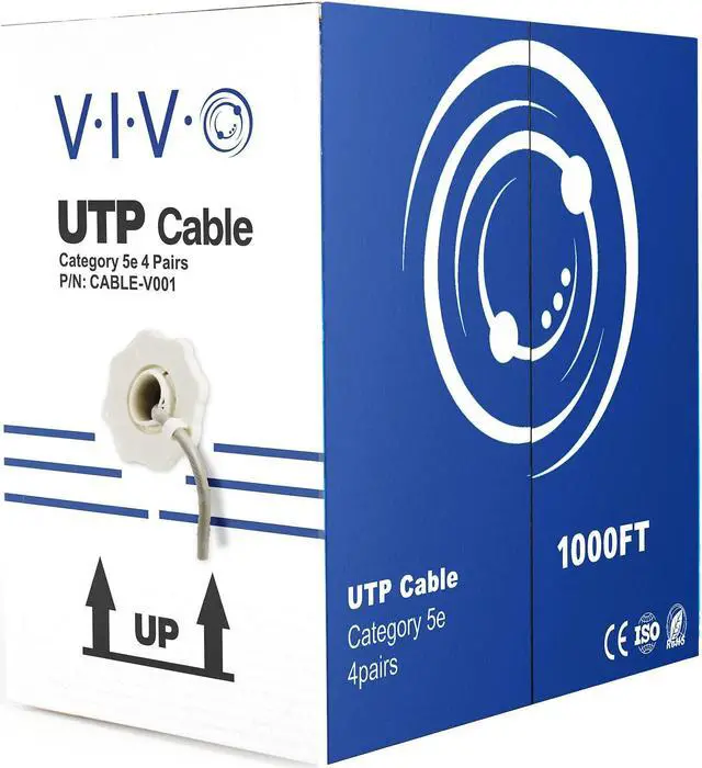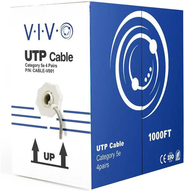 Cat5e UTP (unshielded twisted pair) CCA (Copper Clad Aluminum) 24 AWG bulk ethernet cable is ideal for your network installation. It comes in an easy to use pull box containing 1000 ft of wire with a dark grey jacket. This unshielded cable comes in its own spool box and is connector free, giving the user the freedom to customize the length, wiring and application.