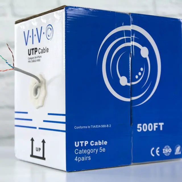 Cat5e UTP (unshielded twisted pair) CCA (Copper Clad Aluminum) 24 AWG bulk ethernet cable is ideal for your network installation. It comes in an easy to use pull box containing 500 ft of wire with a dark grey jacket. This unshielded cable comes in its own spool box and is connector free, giving the user the freedom to customize the length, wiring and application.