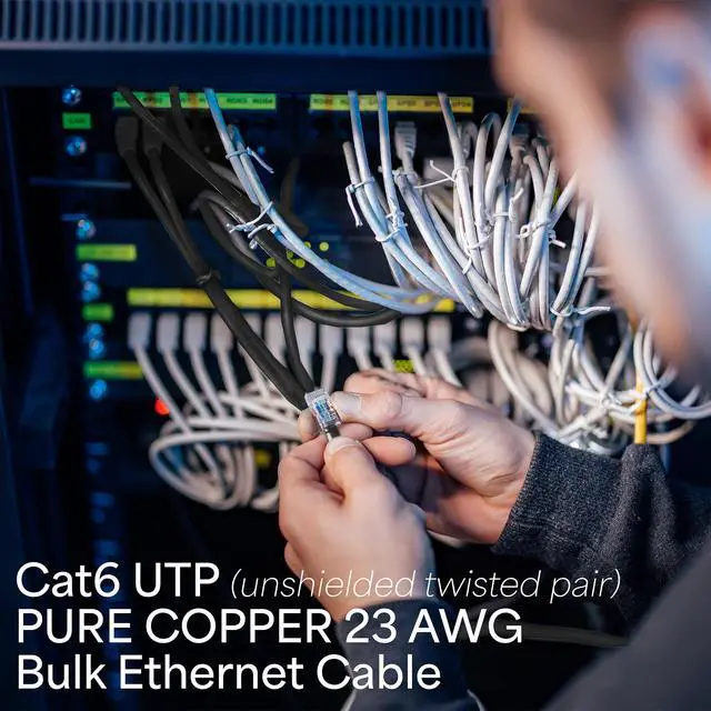 Cat6 UTP (unshielded twisted pair) PURE COPPER 23 AWG bulk ethernet cable is ideal for your network installation. Case contains 1,000 ft of wire in waterproof shielding for outdoor direct burial.This cable is suitable for 10BASE-T, 100BASE-TX (Fast Ethernet), 1000BASE-T / 1000BASE-TX (Gigabit Ethernet) and 10GBASE-T (10-Gigabit Ethernet). It is connector free, giving the user the freedom to customize the length, wiring, and application.