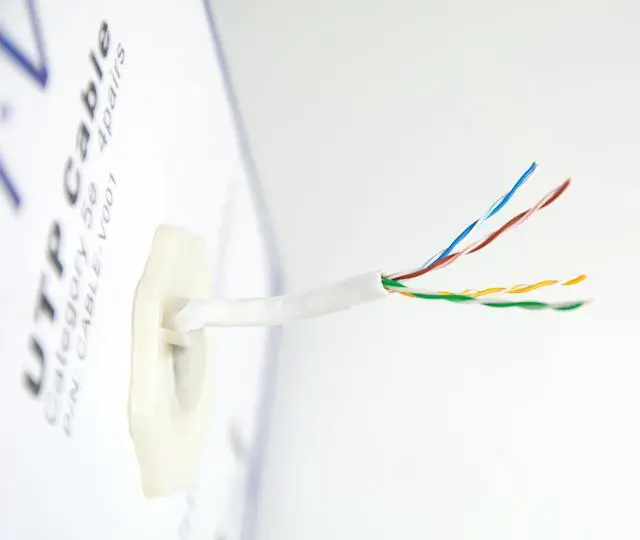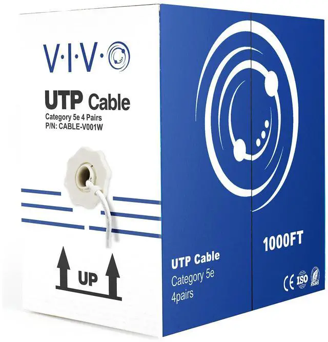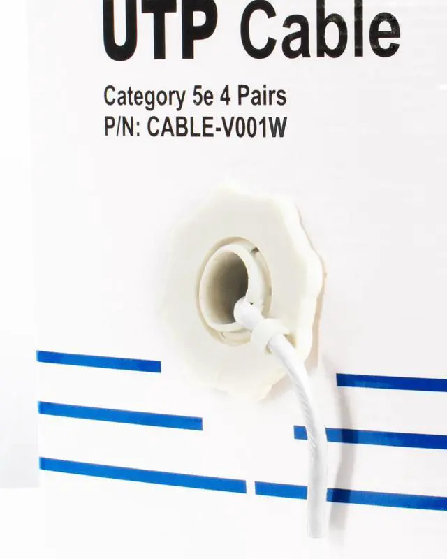 Cat5e UTP (unshielded twisted pair) CCA (Copper Clad Aluminum) 24 AWG bulk ethernet cable is ideal for your network installation. It comes in an easy to use pull box containing 1000 ft of wire with a white jacket. This unshielded cable comes in its own spool box and is connector free, giving the user the freedom to customize the length, wiring and application.
