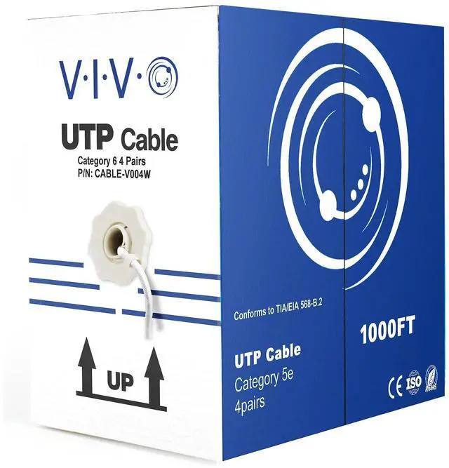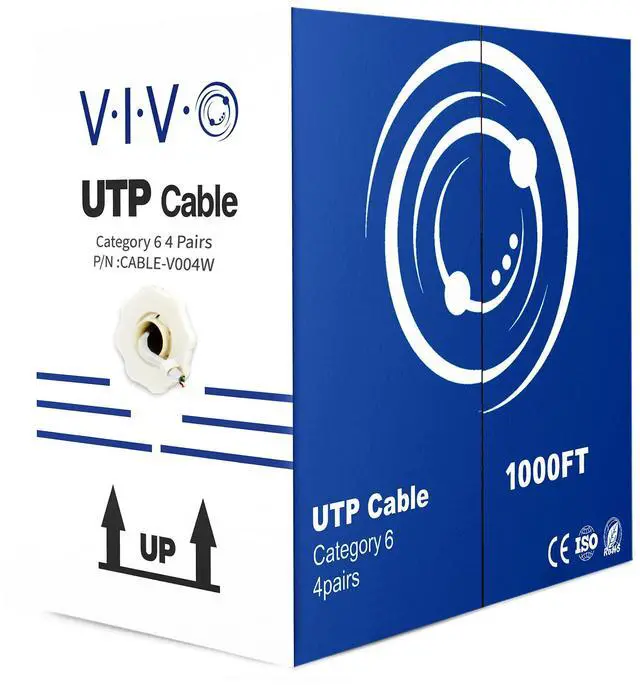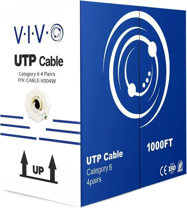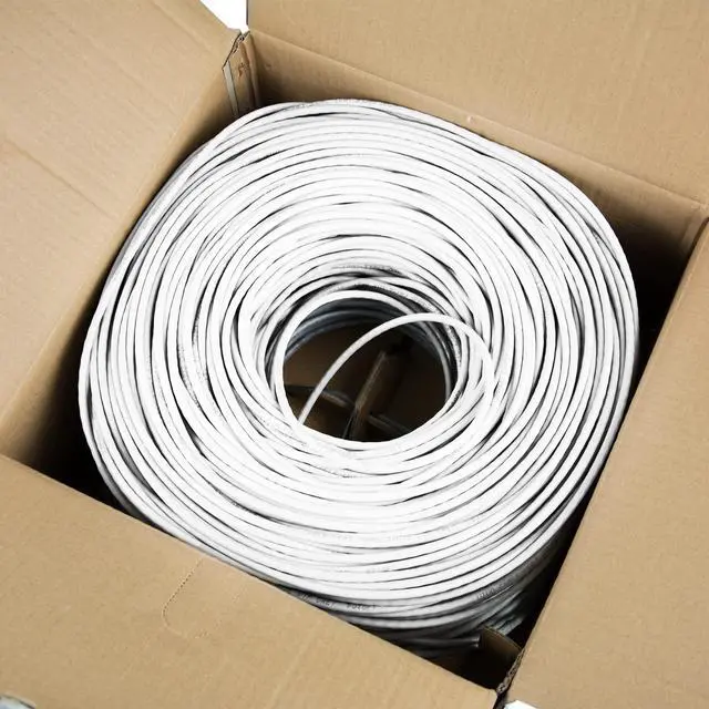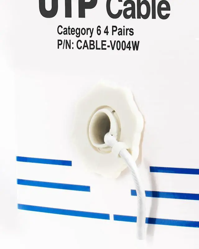 Cat6 UTP (unshielded twisted pair) CCA (Copper Clad Aluminum) 23 AWG bulk ethernet cable in easy to use pull box is ideal for your network installation. The case contains 1,000 ft of wire with a white jacket. This unshielded cable comes in its own spool box and is connector free, giving the user the freedom to customize the length, wiring, and application.