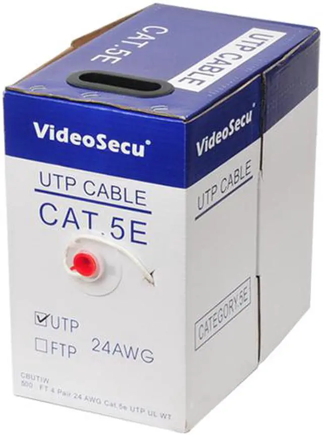 Pure Copper CAT 5E UTP cable, 1000 feet in easy pull box. It is ideal for high-end solutions such as Gigabit Ethernet, or digital CCTV cameras installation utilizing Cat 5e-type cable. Wire your home or office building effectively. This cable consists of 4 unshielded pairs of 24 AWG solid bare copper conductors, white PVC jacket. Stable electrical performance to 350MHz, UL listed.