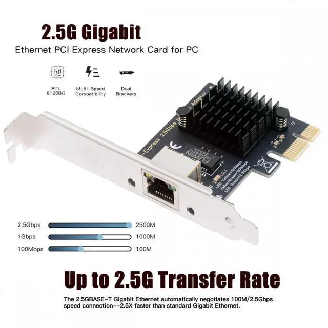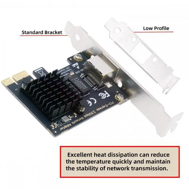Low Profile Flexible Bracket Versatility: Engineered with low-profile and standard bracket, this 2.5G network card provides heightened flexibility for diverse computer arrangements. Irrespective of your computer's specifications, effortless installation is ensured, optimizing your hardware setup.