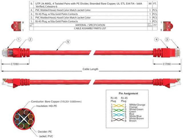 Perfect for connecting routers, modems, switches, gaming consoles, PCs, and professional networking equipment in both residential and enterprise settings. The T-568B wiring configuration ensures compatibility with standard network devices and patch panels for seamless integration into existing infrastructure. Whether you're streaming video, gaming online, or managing business data, this durable red ethernet cable provides the speed and reliability your network demands.
