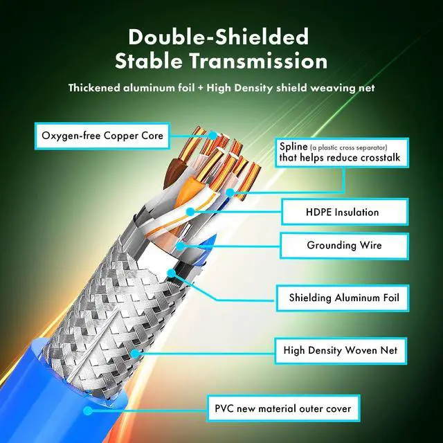 Double shielding; thickened aluminum foil + high density shield weaving net