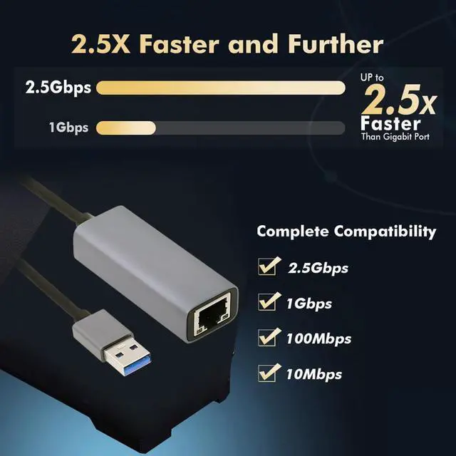2500Mbps 2.5Gbps to USB3.0 Type-A GBE Gigabit 1000Mbps Ethernet Network LAN Cable Adapter for Desktop Motherboard