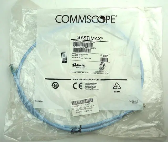 CommScope CPCSSX2-02F004 8C GigaSPEED X10D 360GS10E-C859 Solid Patch Cable - 4 Feet -C6A - RJ45to RJ45 - Light Blue