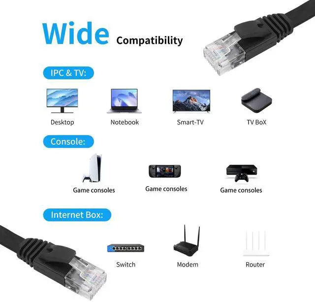 The product description states that the cable is compatible with a wide range of devices such as laptops, gaming consoles, routers and modems, allowing for seamless connectivity between multiple devices.