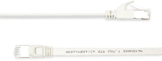 RJ45 Cat 7 Ethernet Patch Cable, Flat, 600MHz, Snagless, Gold Plated, LAN Network, Includes 20 Nails, 50 Foot, White