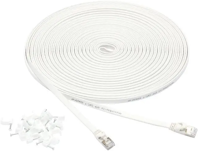 • IN THE BOX: 50-foot Cat-7 STP Gigabit Ethernet patch Internet cable, plus 20 nails for securing in place