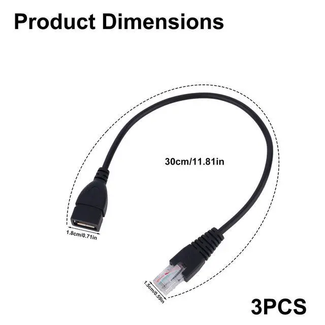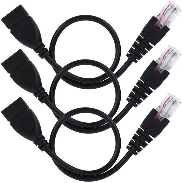 3pcs USB to RJ45 Ethernet Adapter Cable, 30cm/11.81in USB Female to RJ45 Male Converter PVC & Copper Network Adapter Cable for Router Modem Camera Computer Switch (Black)