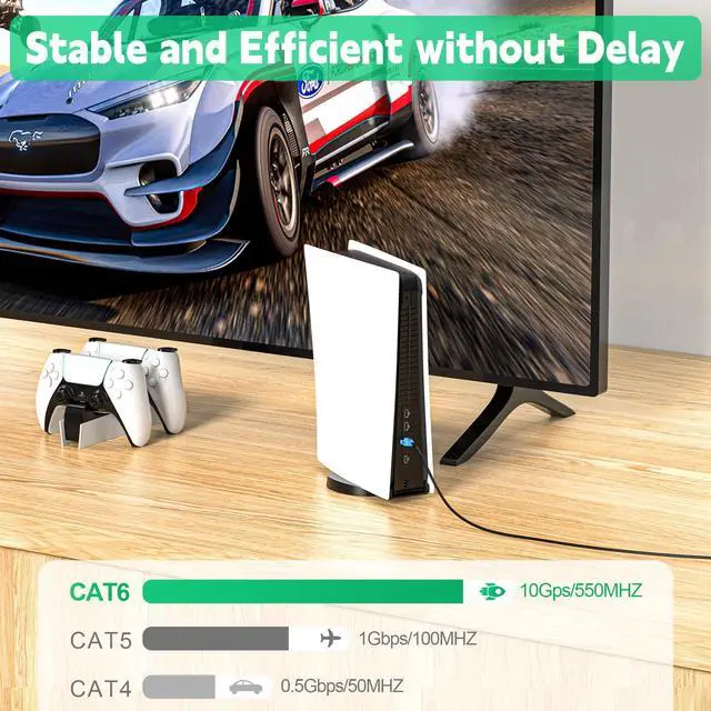 Wide Array of Applications: Compatible with office, gaming and home devices. Backward compatible with Cat5e and Cat5. Compatible with PlayStation 3, PS4, PS5, Xbox, network adapter, hub, router, modem, etc. Provide you with the ultimate data, audio and video experience