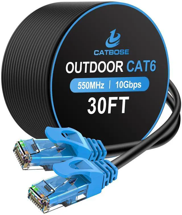 Rugged and Durable: Our Cat 6 outdoor cable, which is 24AWG with 4 pairs of conductors and RJ45, utilizes 550Mhz to transfer data at a speed of up to 10Gbps, offering you the most stable signal and lower delay. Needless to say, it functions impeccably indoors