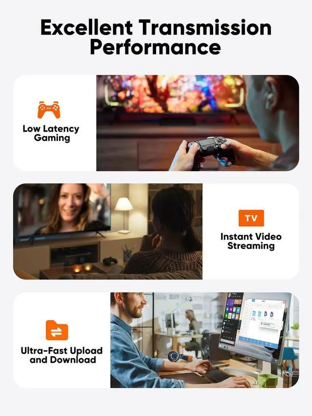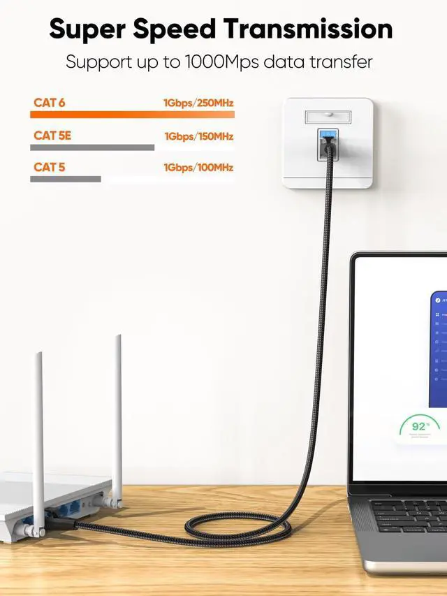 Gigabit Ethernet Cable: Cat6 Ethernet cable supports up to 1000Mbps data transfer (10x compared to Cat5e with 100Mbps) and 250MHz bandwidth (2.5x compared to Cat5e with 100MHz). It's a perfect choice for playing games, online video streaming, downloading, uploading, etc