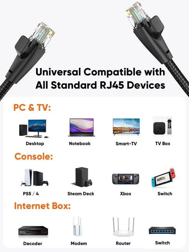 Ideal for LAN network devices such as PCs, computer servers, printers, routers, switch boxes, network media players, VoIP phones, PoE devices, and more. Backward compatible with Cat5e, Cat5 cable network, comply with UL specifications for Cat6 cables