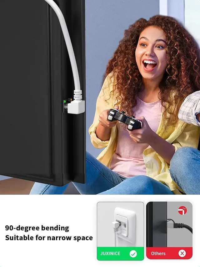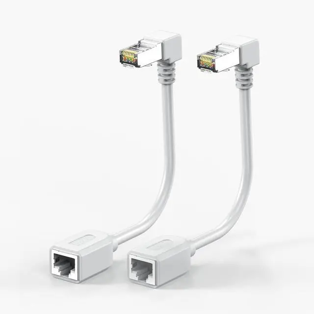 90 Degree Cat6 Extension Cable Upward Angled, extend your existing Ethernet connection to Network device,Use Angled Ethernet cable to connecting in tight spaces behind furniture or in a network closet or wall mounted TV.